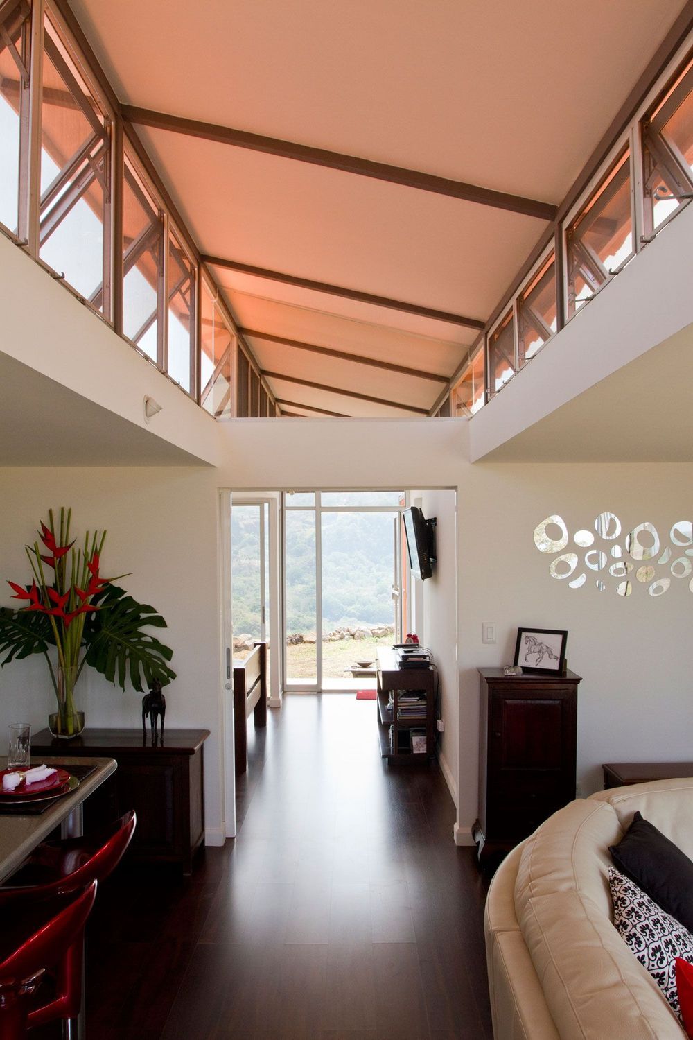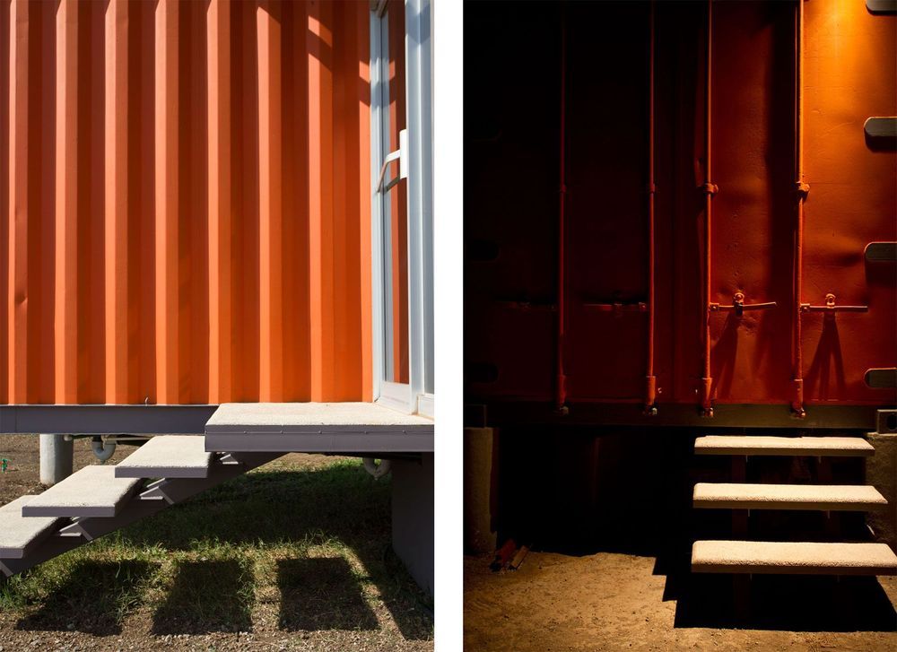 «Era importante para mí proporcionarles unas vistas espectaculares de la salida del sol. La puesta del sol y en general probar y crear una sensación de confort y hogar. Un techo entre los dos contenedores, hecho de metal aprovechado de los elementos sobrantes de las ventanas. No sólo crea una sensación interna de apertura sino que también proporciona una ventilación cruzada. Esta es suficiente para no tener que encender el aire acondicionado.»