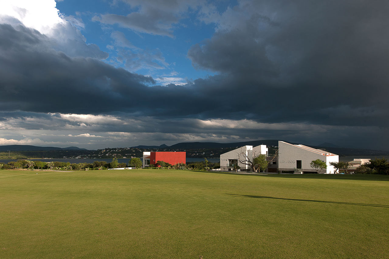Casa adosada-2El reto era diseñar dos casas para los fines de semana para dos hermanos con diversos gustos y estilos, pero había que mantenerlas conectadas mediante un área conjunta al aire libre con una piscina y varias terrazas.