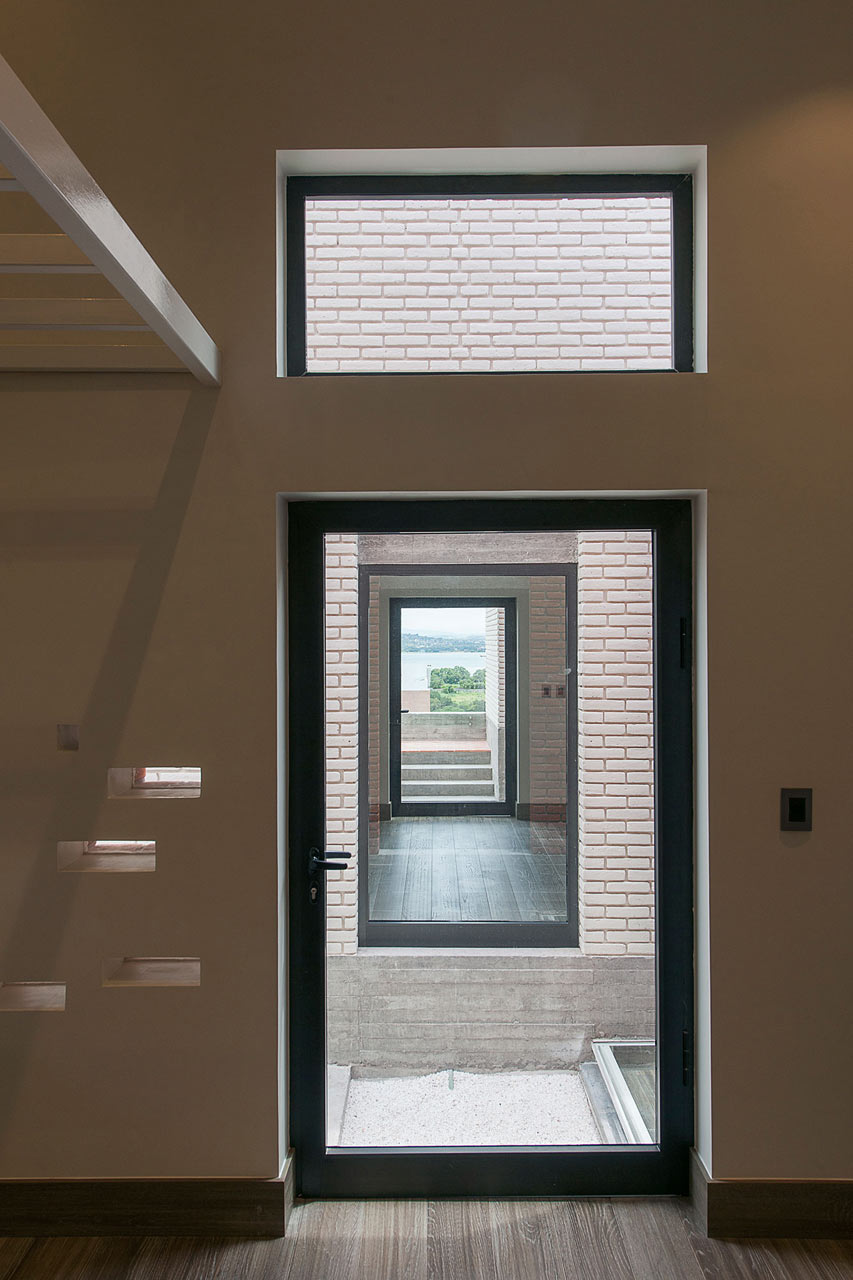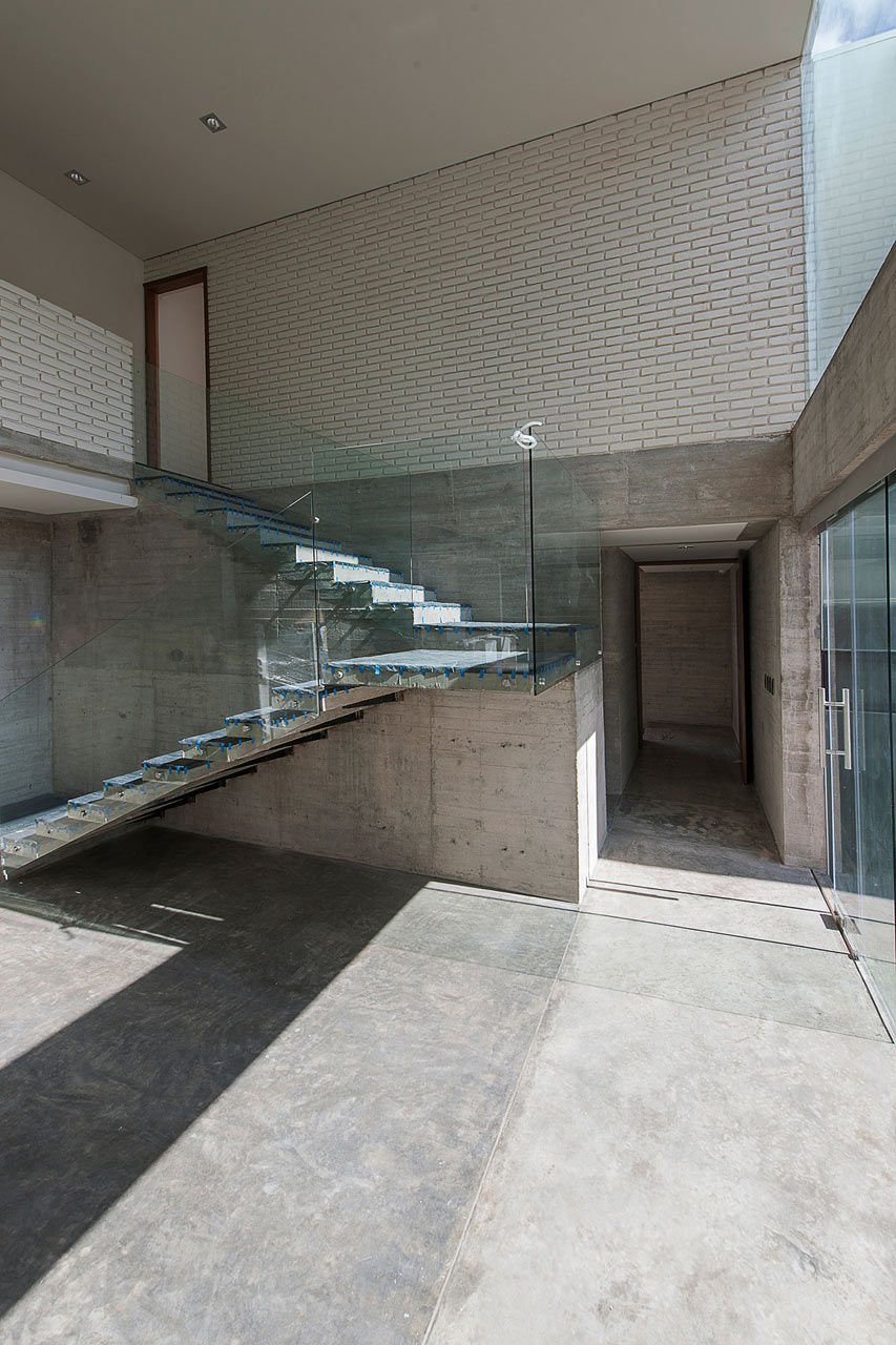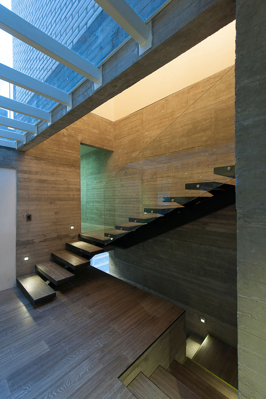 Casa adosada-2bLa casa DATRI está enfocada más hacia el exterior, los espacios interiores tienen una distribución más fragmentada en lugar de un único espacio abierto y diafano. Cada espacio interior tiene un carácter bien definido y diferenciado a medida que se avanza a través de cada estancia. Los materiales en esta casa también se mantuvieron simples.
