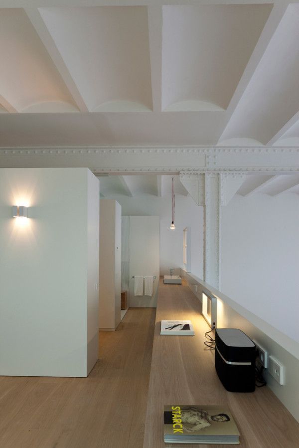 Uno de los colores predominantes, es el blanco. La antigua estructura de acero es un punto muy atractivo de este proyecto, que potencia así su estilo industrial. Los diseñadores le dieron la misma tonalidad blanca que los muebles y las paredes, antiguamente de obra vista.