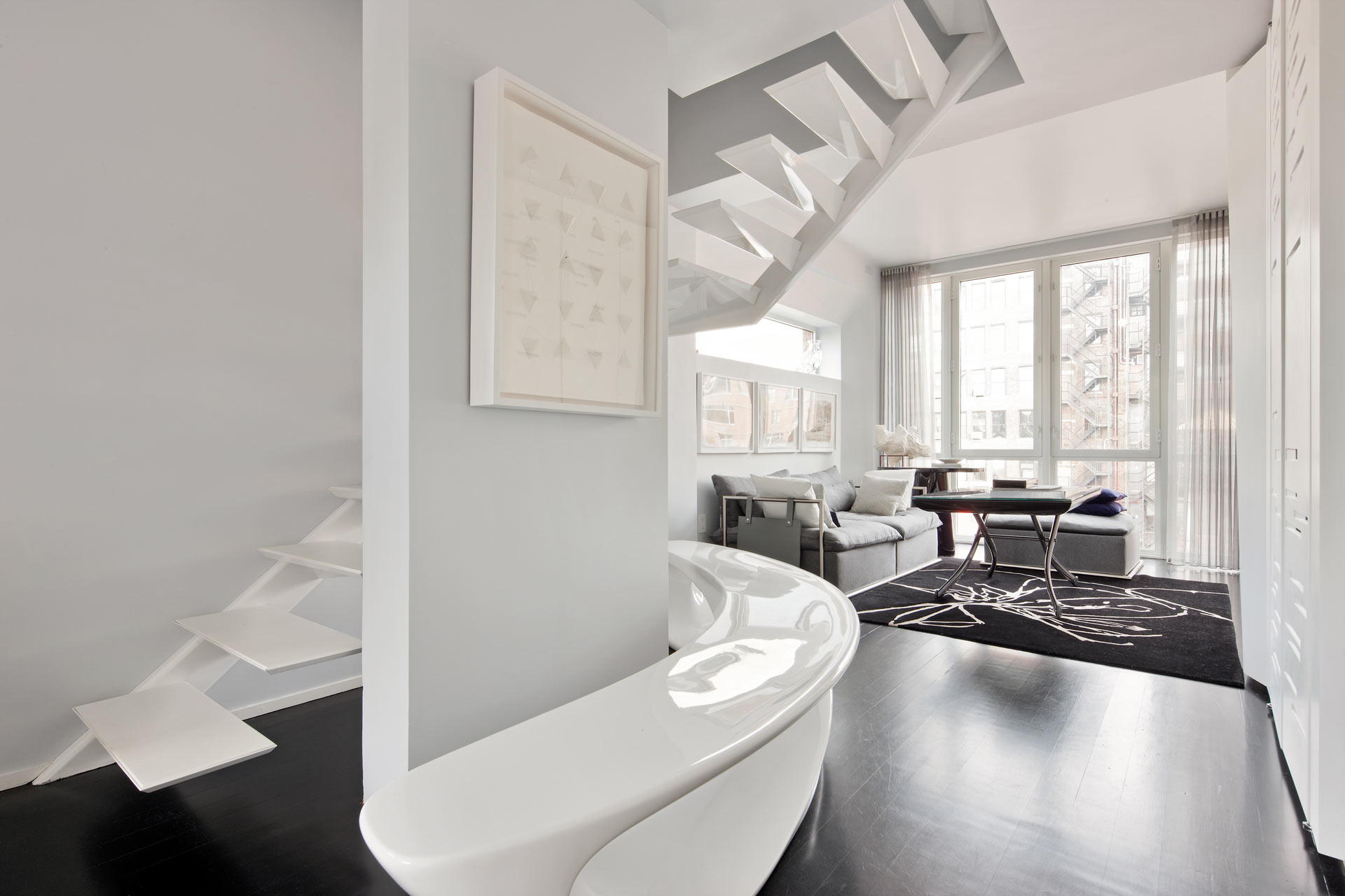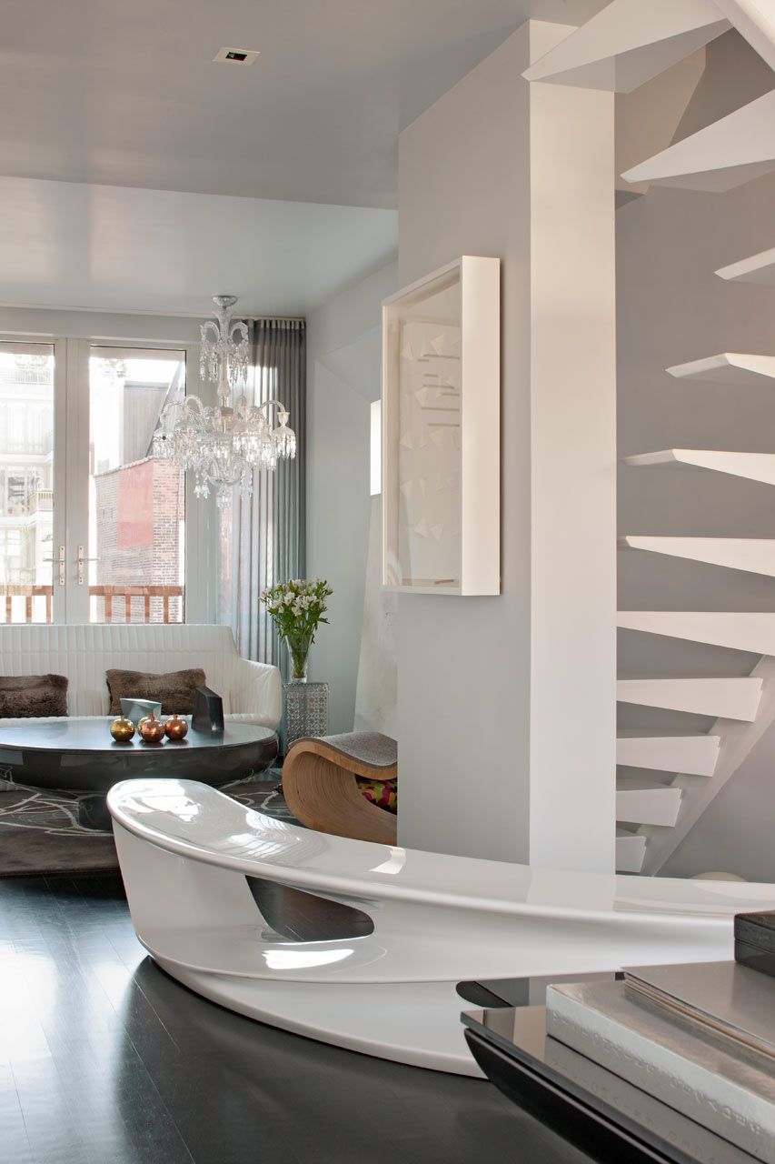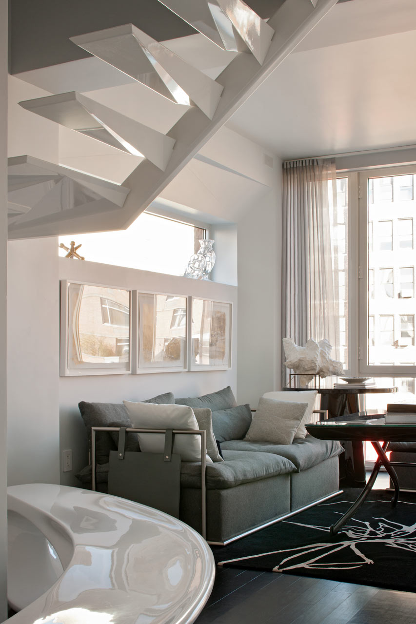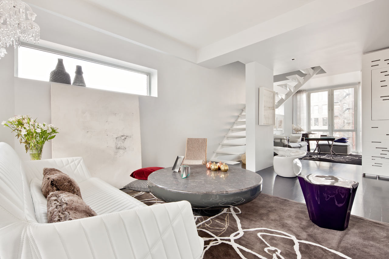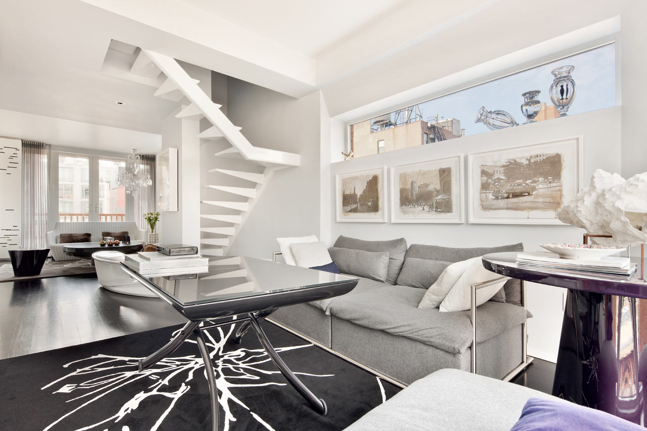 Este elegante ático fue rehabilitado y decorado por el estudio de interiorismo del arquitecto Matthew Bremer con sede en la ciudad de Nueva York. Situado en el barrio de Chelsea (Nueva York) este ático dúplex de 150m2 de superficie tiene un aspecto sofisticado y vibrante como la ciudad en la que se encuentra.
