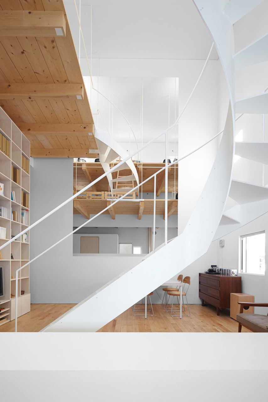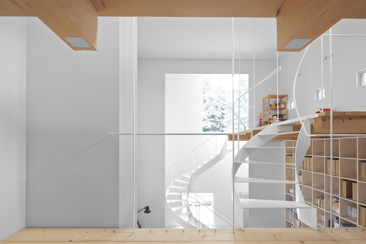 Situada en un suburbio de Sapporo en Japón, la Case House diseñada por el estudio de arquitectos Jun Igarashi Architects, tiene un diseño sencillo en el exterior, como una simple caja, pero los interiores blancos mezclados con madera están llenos de sorpresas.